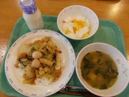 12月4日 中華でした 公開日 2019/12/25 更新日 2019/12/25 給食 ★献立★ 中華丼 にらと豆腐のスープ 杏仁ポンチ 牛乳 しっかりとったガラスープと オイスターソースの風味の効いた 中華丼。 中に入っているウズラ卵は好きな人と嫌いな人が 分かれるので、面白い光景が、、。 とても良く食べてくれました。 おかわりもすすみましたね。 いいね(0)