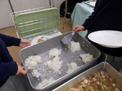 おかわりにきた人の人数を数えて均等に分ける技、