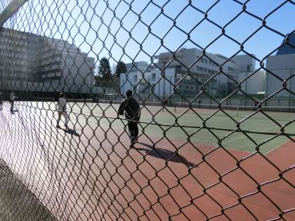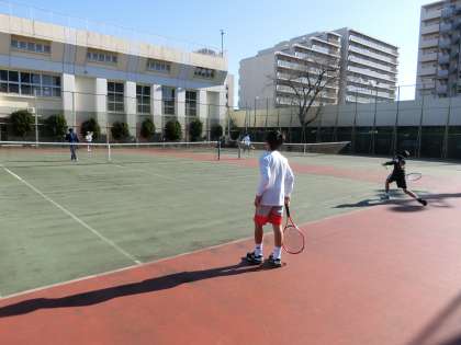 テニス部です。打ち始めは、昨日だったそうです。今日も元気に活動しています。