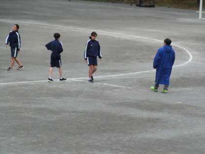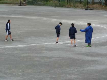 陸上部です。先ほど、ソフトテニス部の写真を撮った時より寒くなってきました。そんななかランニングに励んでいます。