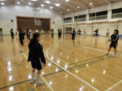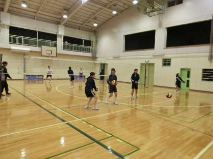女子は、バレーボールです。バレーボールのパスを練習していますが、3年生になってもバレーボールは、かなり中学生には、難度が高いスポーツです。上手くできる生徒とそうでない生徒の差が出る競技かもしれません。