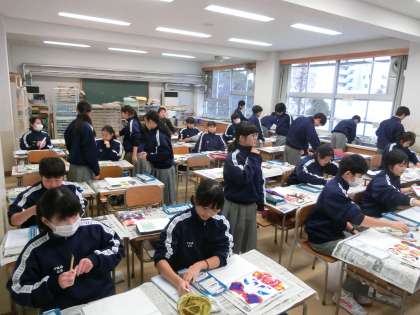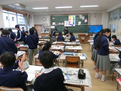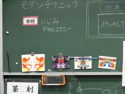 モダンテクニックという現代アートの技法を学ぶ授業です。非常に難解です。今の生徒はこんなことも学ぶのですね、すごい!