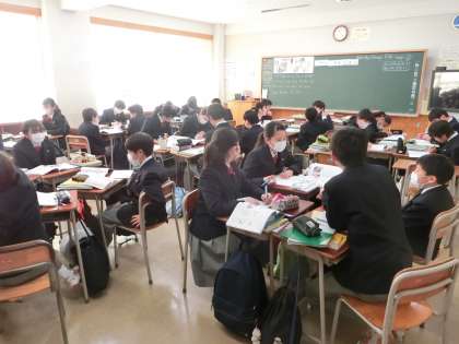 英語です。グループ学習をしていました。