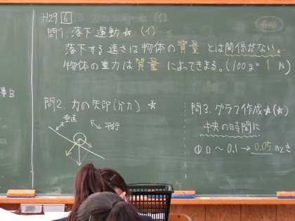 理科の授業です。高校に入学すると物理基礎でまた学ぶ人も多い内容のところです。きちんと基本を学んでおいてください。