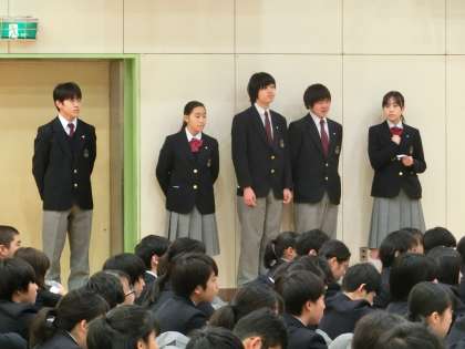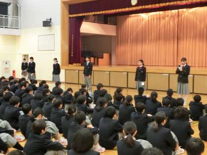 今日は生徒会朝会の日です。生徒会朝会は生徒会が全てを取り仕切って開催する朝会です。生徒の自治活動を促進する大切な教育活動です。