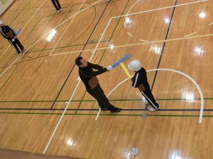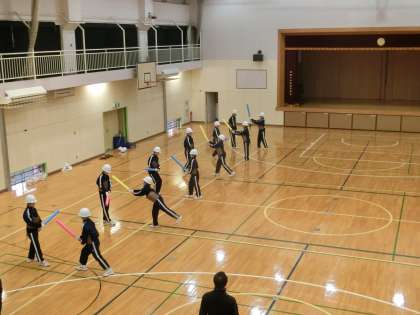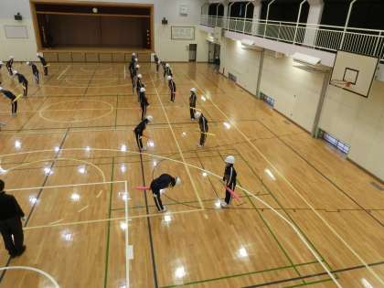 C組、体育の授業で剣道です。防具をつける時間と防具の重さに耐えられなくなり、剣道が嫌いになる生徒を減らすために有段者である体育の教師がいろいろ工夫をしています。教員の研究発表会でも紹介された方法です。少しでも、実技を行う時間を捻出しています。今日は、間合いについて学んでいます。