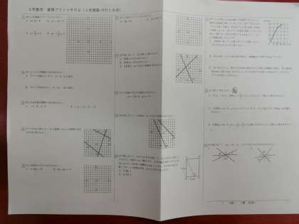 数学です。練習問題を解いています。代数は一次関数、図形は平行
