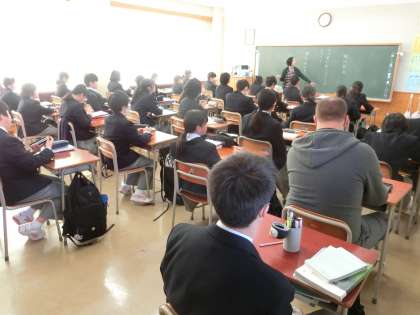 国語です。今日はクラスに配置されているALTが、1年D組なので一緒に授業を受けています。