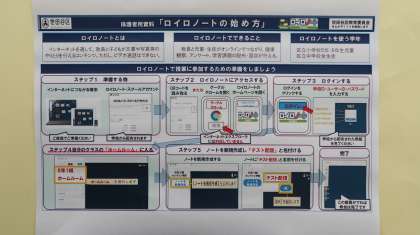 今後の学習活動の準備として「ロイロノートの始め方」とスクールアカウントという両面印刷のプリントを配布いたしました。同時に緊急連絡メールでクラス参加コードを配信しました。これらを用いてロイロノートの準備をしていただきたいと思っています。もうすでにホームルームに参加されて方もいらっしゃるかと思います。29日(金)までにプリントにあります[ステップ4=ホームルームに入る]まで進めてください。もし、間違って登録してしまった、よくわからなくては入れないという場合はそのままで大丈夫です。授業の中で生徒に確認し、あわせて[ステップ5]以降も進めていきます。