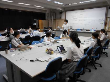 1年生も体育の授業で身体計測を実施していました。少し計測結果が気になっている様子でした。2年生の英語の授業では、音読練習を行っていました。3年生は、「ロイロノート」の確認が行われました。学校で使う場合と家で使う場合の説明がありました。