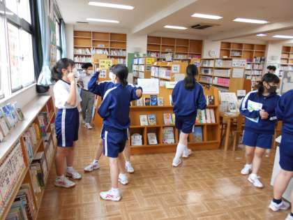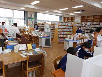 図書館は、2クラスごとに利用ができるようになっています。さらに入る人数も制限しながらの利用です。今日は校庭が使えなかったので人も多かった?でしょうか。