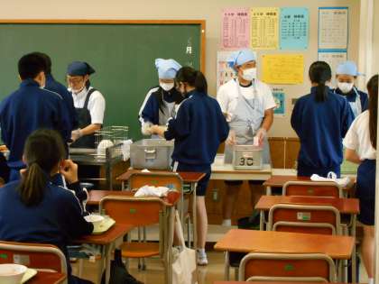給食準備中です 公開日 2020/06/26 更新日 2020/06/26 学校日記 3年生給食の準備。手際の良さが光ります。さすが3年生といったところです。今日は、しょうゆとみそ味の焼きおにぎりとしっかり出汁を取った豚汁です。ひとつひとつ作られたおにぎりには作った方々の気持ちが込められています。また、おにぎりが色々な地域で郷土料理につながっている話もありました。 いいね(0)