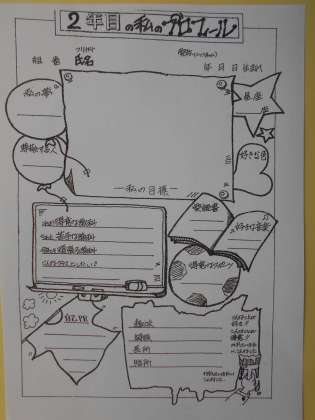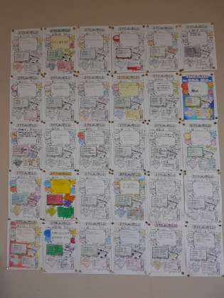 2年生の教室の後壁面に「自己紹介カード」が掲示してあります。ペンで色が付けられていてとても華やかです。みんなの工夫がしっかりと形になって表現されていてなお一層思いが伝わってきます。