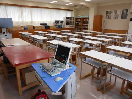 美術室です.術室は、3階西側に第一美術室、東側の奥に第二美術室があります。隣りあわせではないので、間違えてしまうと移動に大変です。先週は第一美術室を使用しての授業でした。