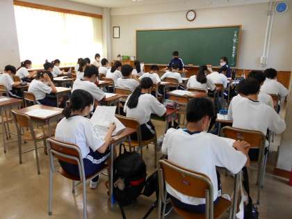 各学年とも、生徒総会議案書の討議が進められています。1年生も学級委員が司会進行を行って討議を進めていました。はじめての見る各委員会の活動方針に活発な意見交換とはいきませんでしたが、それぞれの委員会の活動を確認することができました。この議案書は、生徒会役員を中心に時間をかけて準備していました