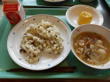 先日のとうもろこしごはんにつづいて、蒸とうもろこしもあり、今が旬で甘みも栄養たっぷりです。