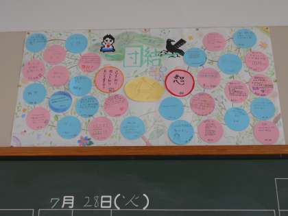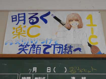 教室の後ろに貼られている、ラスのクラス目標がです。楽しさや明るさが伝わってきます。