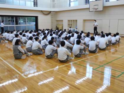 今日は、1学期終業式です。各学年とも学年集会が行われました。生徒の代表からクラスの反省、先生方から今までを振り返ってとこれからのことについてお話がありました。明日からは夏休みになります。時間がたくさんあると逆に色々なことが後回しになりがちです。時間は計画的に有効に使いましょう。