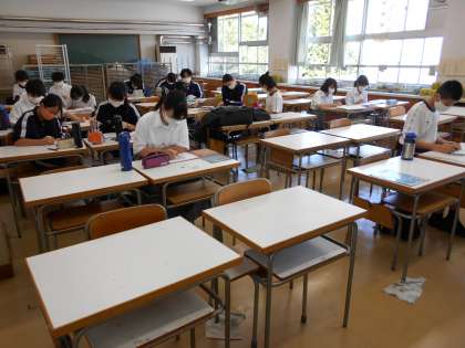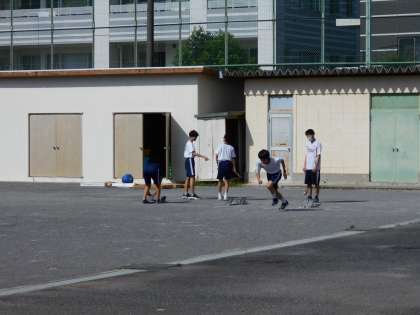 今日は、ソフトテニス部、吹奏楽部、陸上部、美術部が活動していました。ソフトテニス部と陸上部は夏空の下での活動でした。