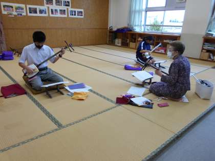 昨日放課後、三味線教室が行われていました。2学期からようやくスタートすることができました。毎週水曜日に行われています。先生の熱心な指導に力が入ります。始めて2回目という生徒もすでに曲を弾いていました。