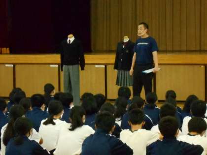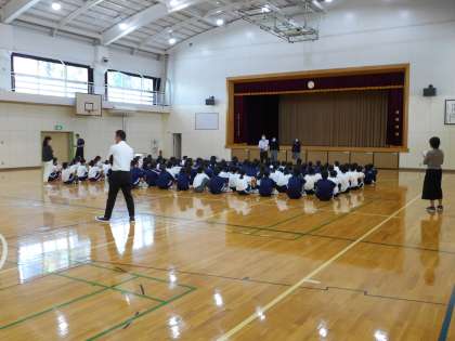 学年集会では、ルールや決まりについて、衣替えの時期にあわせて生活指導主任から標準服の着こなし方について話がありました。現在移行期間中ですが、19日以降冬服になったときの過ごし方について説明がありました。あわせて学年主任よりこれからの生活についても話がありました。