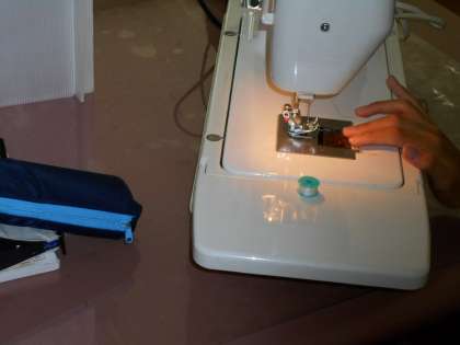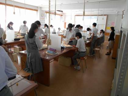 2年生家庭科の授業では、ミシンの使い方について実習していました。糸を通すところから行い使えるようにします。細かい作業に悪戦苦闘する場面も。包括支援員や学習指導サポーターの方に入っていただき進めていました。
