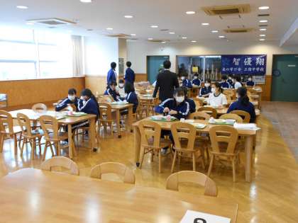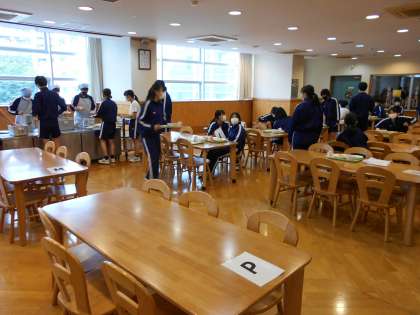 今日から3年生がクラス単位でランチルーム給食を再開しました。広い空間でゆったりと食事ができます。準備もスムーズです。