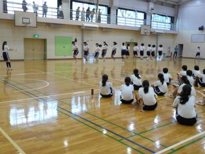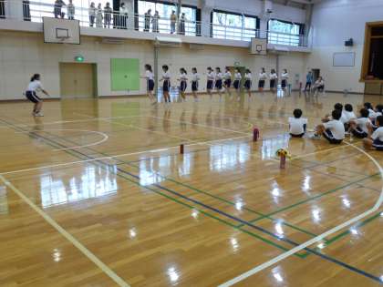 体育大会に代わる競技のひとつとして各学年「三宿競技大会」が行われました。体育大会で行われる全学年全クラス対抗の種目大縄跳びです。本来はクラス全員で跳びますが今回は密集を避け男女別で行います。クラス対抗戦、声の掛け合いなど行事らしい行事に生徒たちも盛り上がりました。