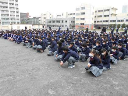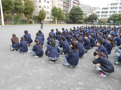 校庭での全校朝会
