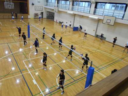 体育館では、バスケットボール部とバレーボール部が半面ずつ使って練習をしていました。バレー部には21日より学び舎行事のひとつ小学生部活動見学・体験できていた児童も混ざって練習していました。1時間くらいと短い時間ですが、少しでも活動の様子や雰囲気を感じていただければと思っています。