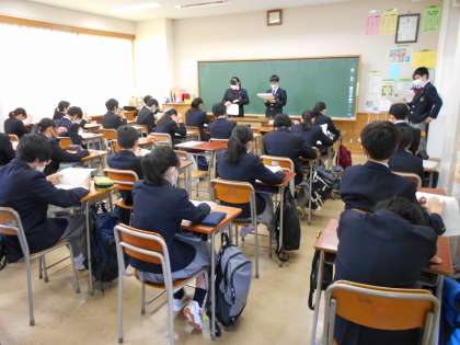 生徒会朝会の様子・学級討議 公開日 2020/11/02 更新日 2020/11/02 学校日記 後期1回目の生徒会朝会です。生徒会本部役員からの話がありました。1時間目に各クラスにおいて学級委員の司会のもと委員会の活動方針の説明があり質疑等をおこないました。 いいね(0)