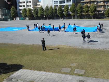今日は2年生の青空給食でした。手際よく校庭にシートを敷きあっという間に準備ができました。各自でお弁当給食を当番のところにとりに行きます。2年生は、各クラスの同じ出席番号の人(1〜8番のように)で集まってほかのクラスの人と食べました。日差しも暖かで風もなく青空給食日和でした。