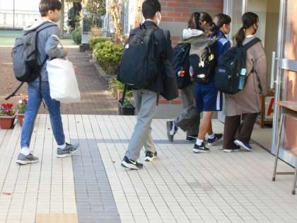 カジュアルデーの今日の登校風景です。少しずつ寒さ対策がなされて服装にも変化がみられます。