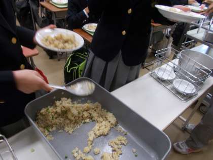 準備に15分食べるのに15分しかない中学校の給食時間です。