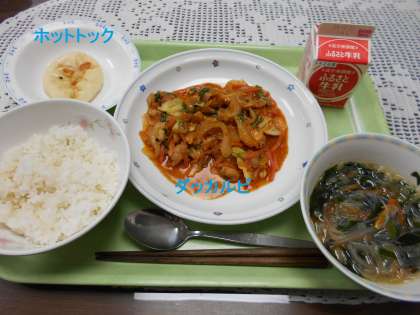 今日の給食は 公開日 2020/12/10 更新日 2020/12/10 学校日記 昨日に引き続きオリンピックパラリンピック給食です。今回は韓国の料理の“ダッカルビ”です。この名称は耳にしたことがある人も多いのではないでしょうか。ちょっとピリ辛のダッカルビはごはんが進みます。おかわりもたくさん?ホットトックのじゃんけんでの争奪戦も・・ いいね(0)