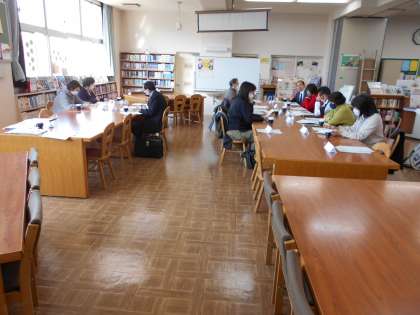 12日(土)図書室において開かれました。今回は学校評価アンケートの結果に基づいて話し合いがされました。日本大学の杉森ゼミの学生の方々のヒアリングの報告も併せてありました。