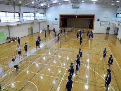 体育館から聞こえてくる歓声は2年生男子が体育の授業でやっていたバレーボールでした。職員室前廊下にまで響き渡るほどの歓声で元気よく行っていました。女子は校庭でソフトボールでした。