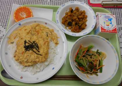 今日は冬至です 公開日 2020/12/21 更新日 2020/12/21 学校日記 冬至といえば南瓜と柚子ですね。給食では、豆(大豆)とじゃことあわせて甘辛あげにしました。トロトロ親子丼ともにごはんが進みます。 いいね(0)