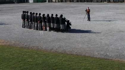 3年生は卒業アルバム用の学年写真やクラス写真の撮影を行っていました。和やかな雰囲気の中、写真屋さんの声が響きます。