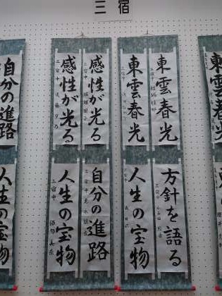 生徒作品展覧会より その1 公開日 2021/01/15 更新日 2021/03/29 学校日記 1月17日(日)まで世田谷美術館 1階ギャラリーで世田谷区立中学校生徒作品展覧会が開催されています。三宿中学校からも書写・美術・技術・家庭科の作品が展示されています。 いいね(0)