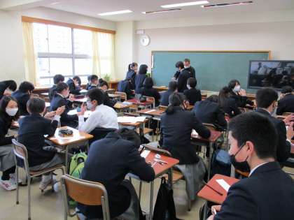 日本語の授業で 公開日 2021/02/05 更新日 2021/02/05 学校日記 2年生の日本語授業「楽しむ」の中でA組は川柳づくりにチャレンジしていました。川柳は五・七・五のリズムのせて “クスッ”と笑えるようなささやかな出来事を詠みます。さてどんな作品に仕上がったでしょうか。みんな続々と完成します。 いいね(0)