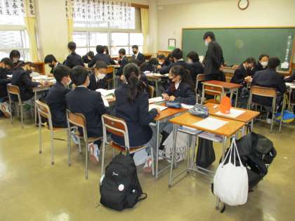 1時間目の学活では 公開日 2021/02/15 更新日 2021/02/15 学校日記 3年生は、格技室で修学旅行についての説明がありました。2年生は、学習計画表づくり、1年生は、学年末考査対策を行っていました。 いいね(0)