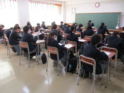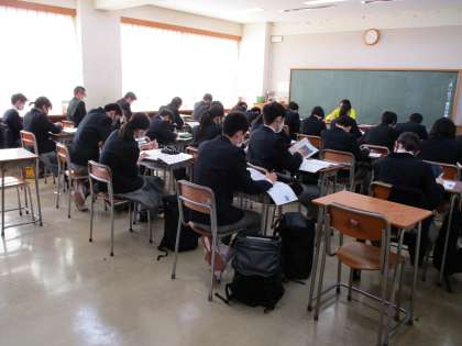 学年末考査直前。1時間目の学習の取り組みも1・2年生ともに集中していました。