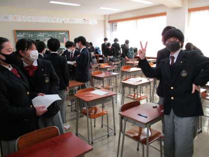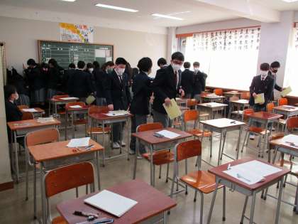 学年末考査最終日 公開日 2021/02/27 更新日 2021/02/27 学校日記 今日は学年末考査の最終日でした。終わったあとのほっとした表情、嬉しさがうかがえます。3年生にとってみればこれが三宿中で受ける最後の定期考査でした。 いいね(0)