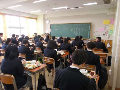 給食が始まると静かに黙々と食べています。