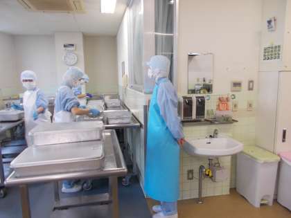 給食室では少しでも不衛生にならないように