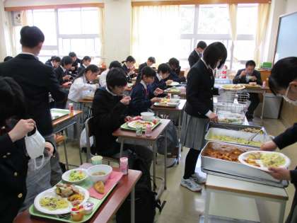 3年生も三宿中で食べる給食も気が付けば今日と明日の2回です。そのお別れ給食は特別メニューでした。