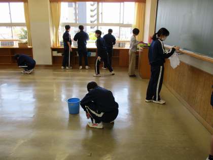 自分たちが使用した教室を離れる前に気持ちを込めてきれいにしました。
