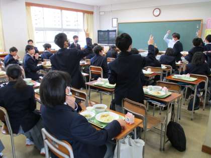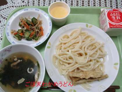 郷土料理給食 公開日 2021/04/13 更新日 2021/04/13 学校日記 今回は福岡県の郷土料理です。ごぼう天わかめうどん、ごま和え、手作りプリンです。豚骨ラーメンは知っている人も多いですが、うどんも有名なんです。数物はじゃんけんに! いいね(0)