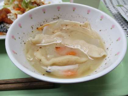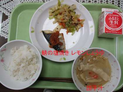 今日は、大分県の名物料理、団子汁です。長く伸ばした特徴的な団子です。ほかにも大分といえば関サバも有名ですがそれにちなんで鯖の塩焼きです。